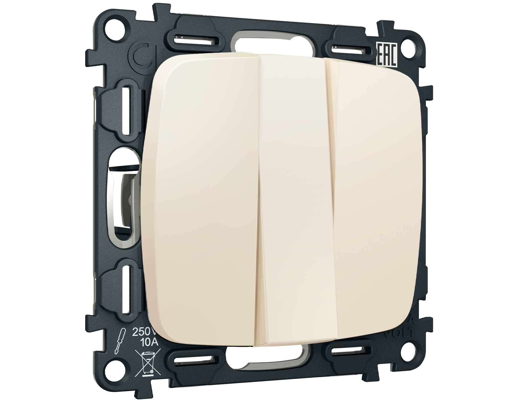 Комплект механизма 3-клавишного выключателя OMEGA MO325010 Бежевый матовый QUANT