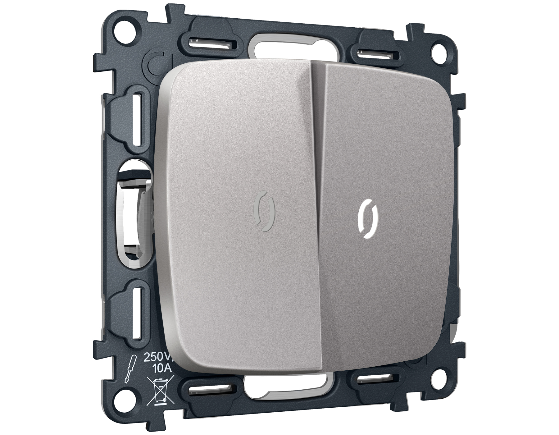 Комплект механизма 2-клавишного выключателя с подсветкой 5600K OMEGA MO504015 Сталь матовый QUANT