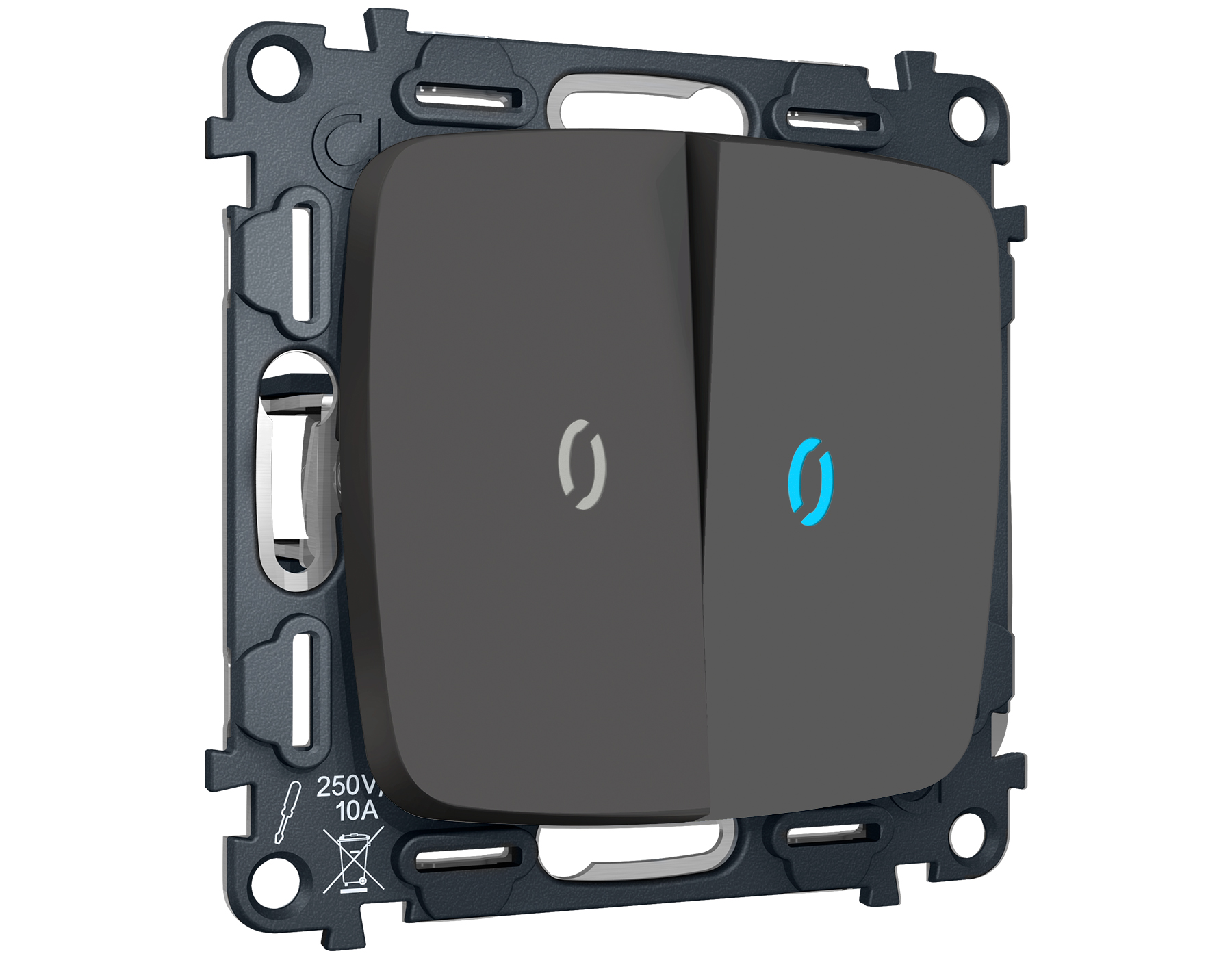 Комплект механизма 2-клавишного выключателя с подсветкой 10000K OMEGA MO904020 Графит мягкое касание QUANT