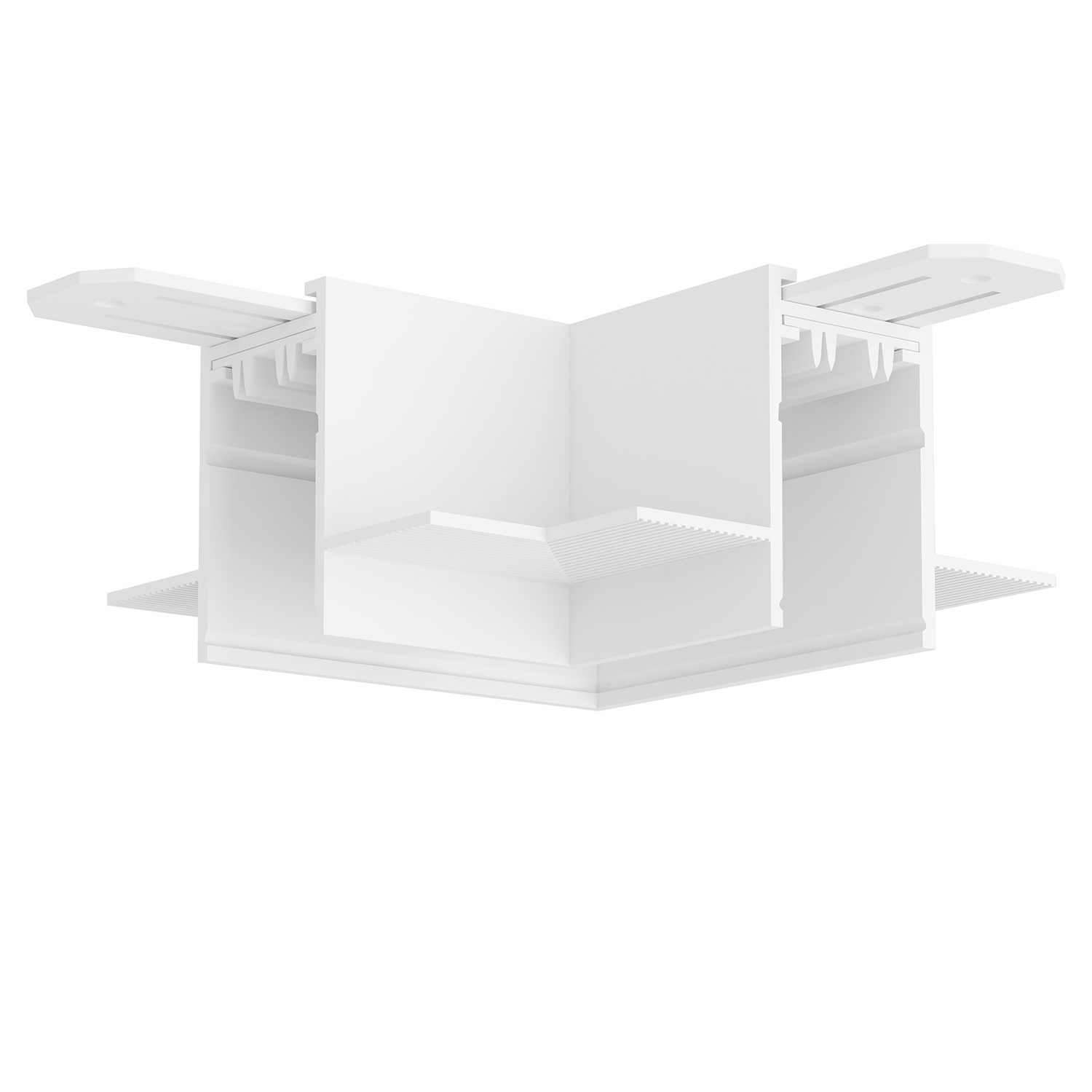 Специализированный трек, предназначенный для встраиваемого монтажа в потолки и стены из гипсокартона. Имеет фланцы-упоры по всей длине, благодаря которым надежно фиксируется в материале потолка либо стены Для создания угла 90°. Соединительные пластины входят в комплект. Гибкий электрический коннектор TR2103 приобретается отдельно.Угловой механический соединитель трека SMART, для встраиваемого монтажа в гипсокартон. Предназначен для создания прямого угла в одной плоскости. Гибкий электрический коннектор арт. TR2103 приобретается отдельно. Две металлические соединительные пластины, служащие для крепления трека и углового элемента входят в комплект поставки.