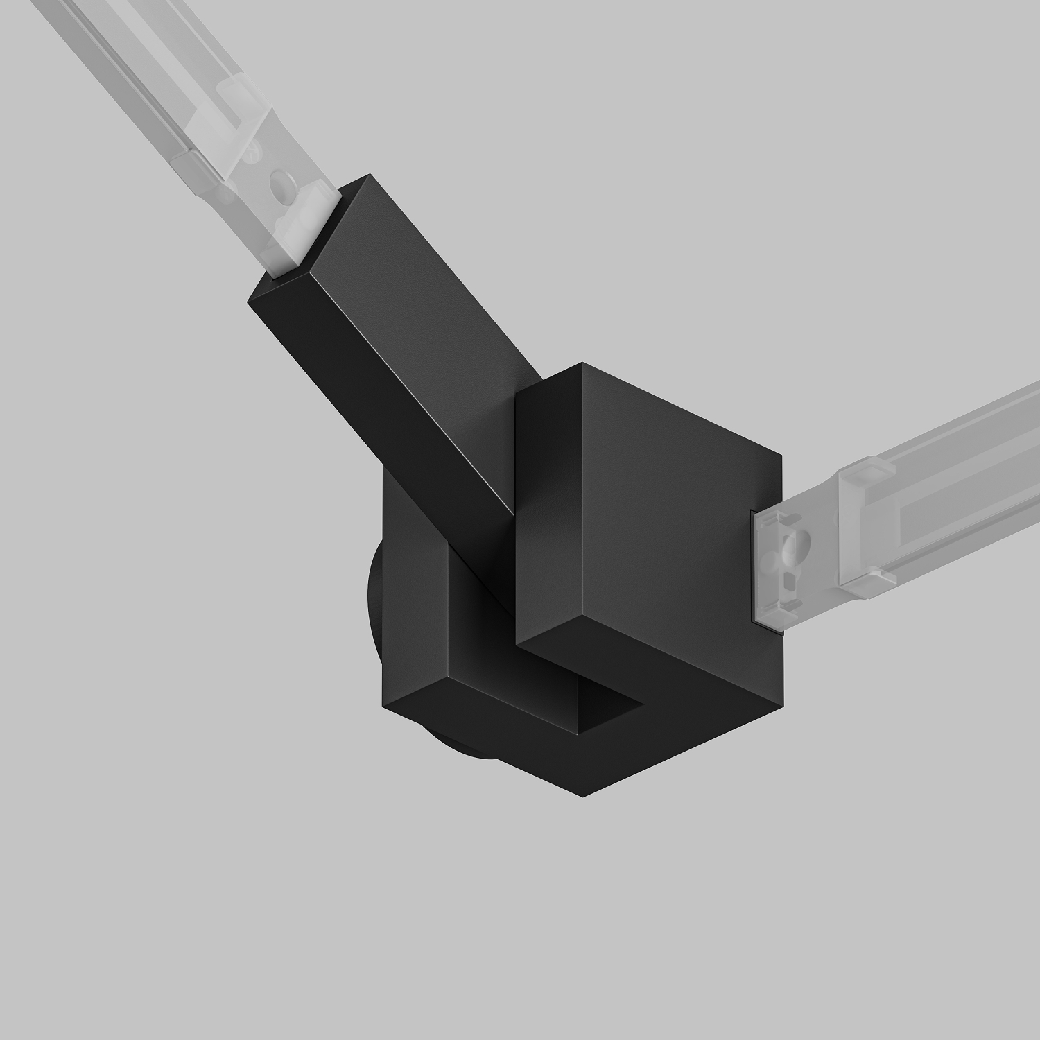 Имеет подвижный элемент, позволяющий выполнить соединение треков в двух плоскостях под произвольным углом.